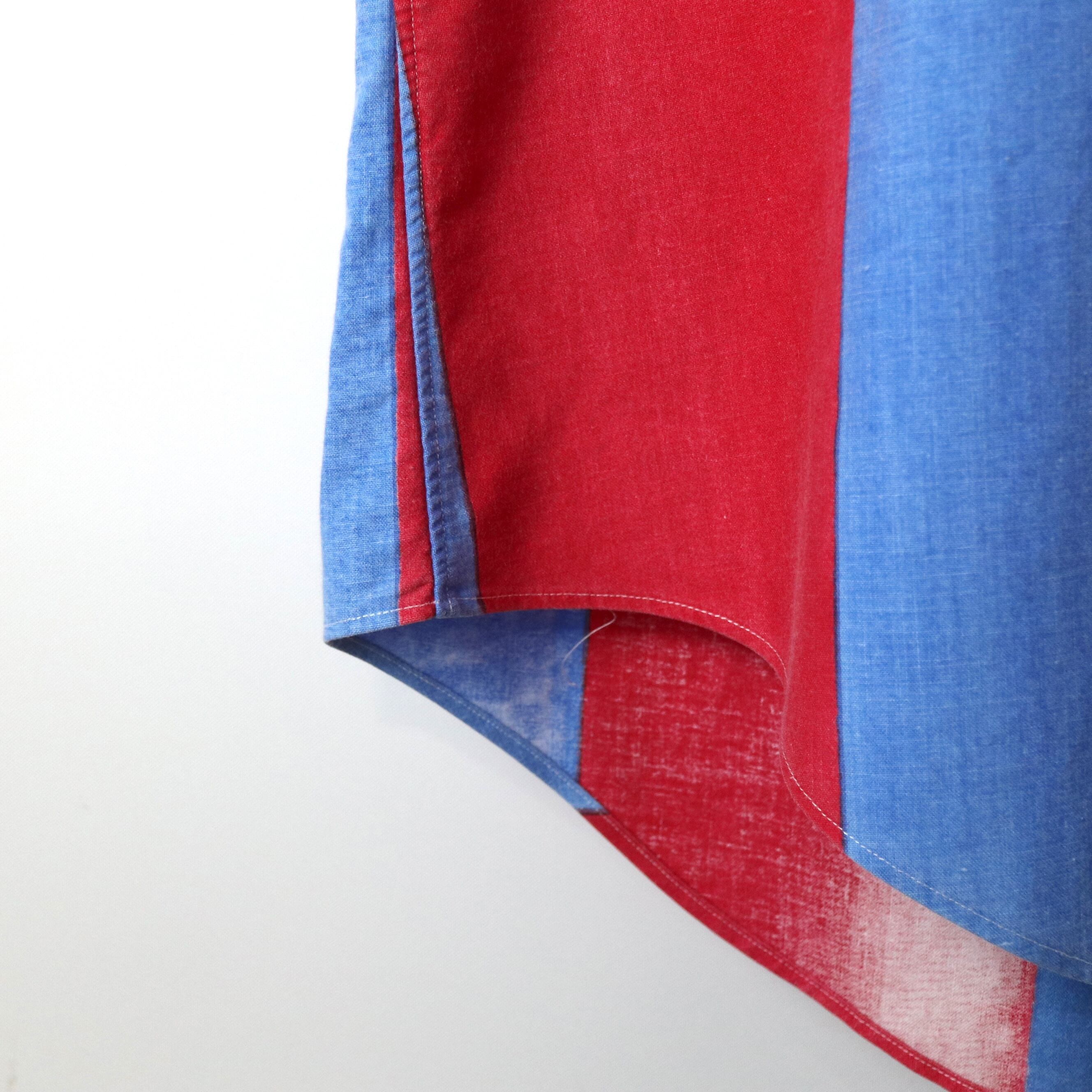 希少なラルフローレンの手書き風なパターンの半袖シャツ。一般的なストライプとは違うバラツキ感が雰囲気があり、サイズも大きめが多い中、Mとゴールデンサイズ。